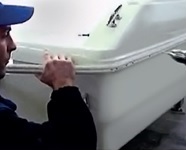 The stainless steel bars are first pressure fitted by hand and then tapping with a plastic board and hammer (as shown). The assembly of the stainless steel bars must begin at the bow and proceed towards the stern from on one side and then from the other.